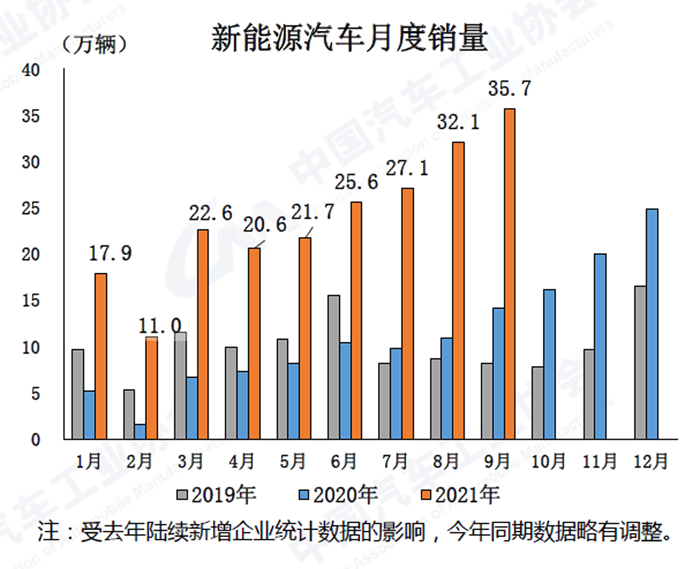 9月,新能源汽車市場表現依然出色,產銷環比和同比均呈增長,且產銷量均超過上月,再創歷史新高,分別達到35.3萬輛和35.7萬輛,環比增長14.5%和11.4%,同比增長均為1.5倍。在新能源汽車主要品種中,與上月相比,純電動和插電式混合動力汽車產銷均呈增長;與上年同期相比,純電動和插電式混合動力汽車產銷同樣保持迅猛增長。