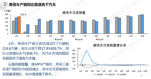 1月,汽車產銷分別達到242.2萬輛和253.1萬輛,環比下降16.7%和9.2%,同比增長1.4%和0.9%。