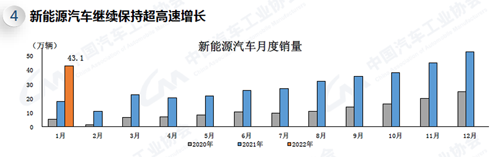 中國汽車工業協會最新數據顯示,2022年1月,汽車產銷環比有所下降,同比呈小幅增長,其中新能源汽車表現依然突出,同比繼續保持快速增長勢頭。主要特點如下: