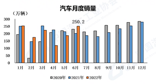 6月,汽車產銷分別達到249.9萬輛和250.2萬輛,環(huán)比增長29.7%和34.4%,同比增長28.2%和23.8%,結束了下降趨勢。
