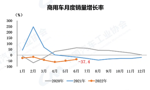 6月,商用車產銷26.1萬輛和28.1萬輛,環(huán)比增長15.7%和17.4%,同比下降33.2%和37.4%。