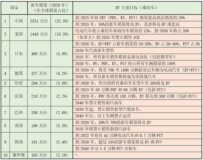 表1所示為2020年汽車(chē)銷(xiāo)量排名前10的國(guó)家,他們的銷(xiāo)量占全球銷(xiāo)量的70%以上。鑒于這些國(guó)家正在推進(jìn)電動(dòng)化,可以預(yù)見(jiàn)2030年汽車(chē)行業(yè)的電動(dòng)化率將大幅提升。