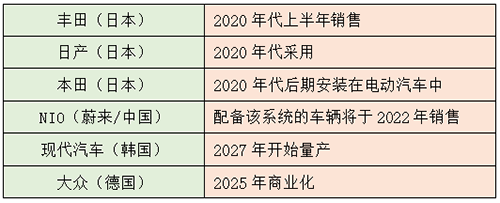 在這些相關(guān)零部件中,下一代電池將成為2030年的關(guān)注焦點(diǎn)。為了擴(kuò)大EV的使用范圍,共同課題是急需降低車(chē)輛成本和延長(zhǎng)續(xù)航里程。截至2020年,新一代電池中備受關(guān)注的全固態(tài)電池研發(fā)才剛剛起步,不僅是電池廠商,汽車(chē)廠商也紛紛開(kāi)始參與研發(fā)(表4)。