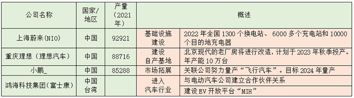 表2 主要汽車(chē)廠商電動(dòng)汽車(chē)情況介紹