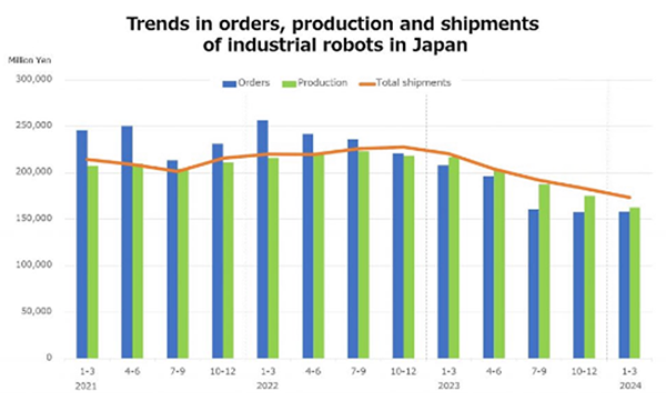 1. 2024年第一季度日本工業(yè)機器人產(chǎn)量創(chuàng)10年來最大降幅