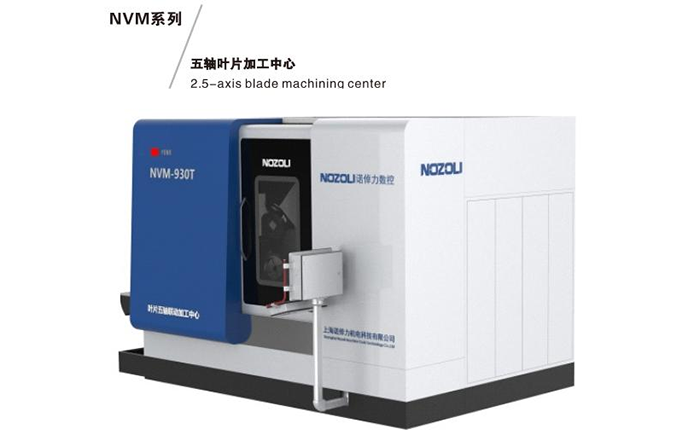 該機是全面升級的新一代工序復合機床。可在一次裝夾完成工件外圓、內圓、端面、錐面、非圓、曲面等部位的磨削加工,完全改變多臺機床分序加工的傳統(tǒng)加工方式。本機床所采用的內外圓復合磨削技術在國內屬于前沿,同時憑借上機先進的設計制造水平,使產品具有加工精度、效率及柔性都較高的特點。適用于國防、航空、量具、機床、汽車等行業(yè)的精密機械加工。 42.上海諾倬力機電科技有限公司 NVM-930T五軸葉片加工中心