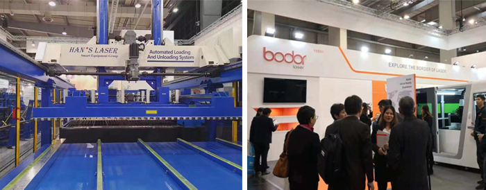 在展品方面,濟二攜成套沖壓產品模型和智能沖壓監控系統參展,通過大屏幕視頻宣傳配合,充分展示了企業在高速沖壓、板料剪切、自動化等成套設備方面的最新技術成果,這已經是濟二自2004年以來連續八次參加EUROBLECH。合鍛智能以旗下收購的德國LAUFFERPRESSEN品牌參展,展品包含高速熱沖壓生產線、機械壓力機以及自動化領域產品等。此外,激光產品正在成為中國企業參展的主流展品,大族激光展出的光纖激光切割機+單機ALU料庫、全自動上下料激光切管機,亞威股份展出的HLF系列高速光纖激光切割機,邦德激光展出的P系列激光切割機,T系列管材專用激光切割機等,基本代表了國內激光企業進軍歐洲市場的主流。在參展方式上,濟二、大族激光、亞威股份等知名企業都是獨立參展,中展遠洋等展覽公司組團參展成員主要是一些模具企業、部件企業,并以標準展位參展為主。
