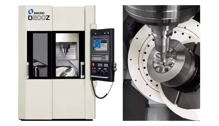 五軸立式加工中心D200Z是牧野D系列中規(guī)格最小,但最靈敏的五軸聯(lián)動機床,專注于小型模具的高效高品質(zhì)表面加工。機床采用了約45°斜面結(jié)構(gòu)“懸臂”旋轉(zhuǎn)工作臺。工件在工作臺上,無論重量和姿態(tài)如何,其重心變動均可限制在很小幅度。這樣防止了彎曲和扭曲變形,提高了加工精度。