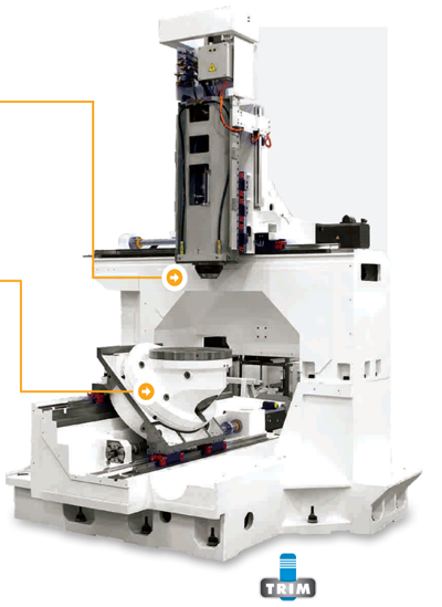 車銑復合加工中心MX 9,高性能鑄鐵床身,動柱結(jié)構(gòu)設(shè)計,集成電主軸,45°斜面雙擺角銑頭,可實現(xiàn)立臥轉(zhuǎn)換,A軸擺角范圍-45°到180°,配置主軸振動檢測功能,減少主軸振動。雙工位交換工作臺尺寸Φ1000mm×800mm,負載1000kg,轉(zhuǎn)速30r/min;機床X、Y、Z軸行程分別為1250mm、1250mm、1000mm,快移速度60m/min,加速度0.6g;主軸錐孔HSK 100A,最高轉(zhuǎn)速10000r/min;直線軸定位精度7μm,重復定位精度4μm,旋轉(zhuǎn)軸定位精度10",重復定位精度5"。適合高硬度材料復雜形狀零件的高精度加工。
