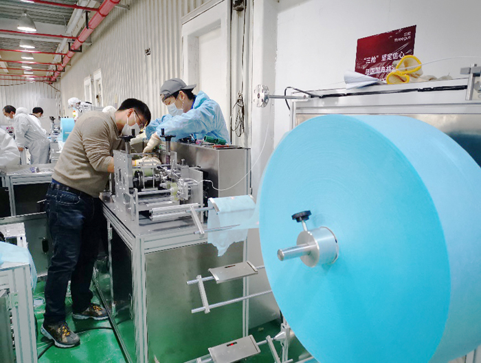 截至2月18日,已有一臺口罩機進入試生產,其他設備也已進入最后的安裝調試階段。