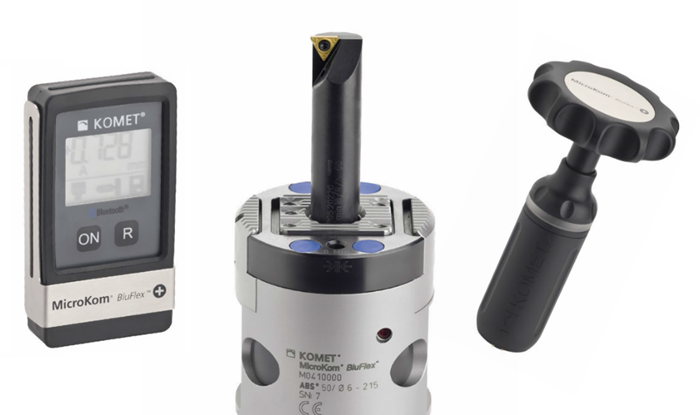 森拉天時集團的高邁特推出了其依靠藍牙調節的MicroKomBluFlex微調精鏜刀具。它的微調精鏜頭通過藍牙技術將微調讀數在單獨的顯示器(例如手機)上以μ級為單位顯示,從而無論是在對刀儀上還是機床內,當用戶通過電子手輪操作調節鏜刀儲存時,能更精確、更方便地在顯示器上讀取數據,也可以在手機上通過應用程序直接設定所需要的鏜孔尺寸并讓鏜刀直接調節到該尺寸。