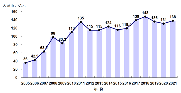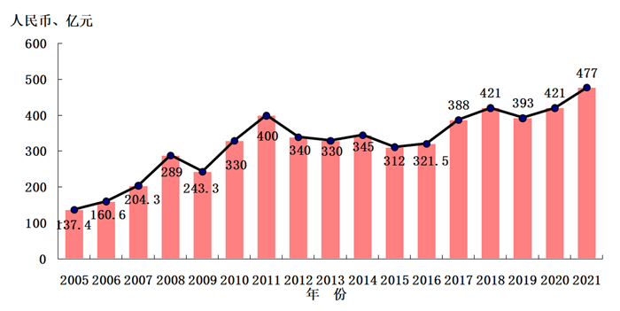 圖1 2005-2021年中國刀具市場規模變化