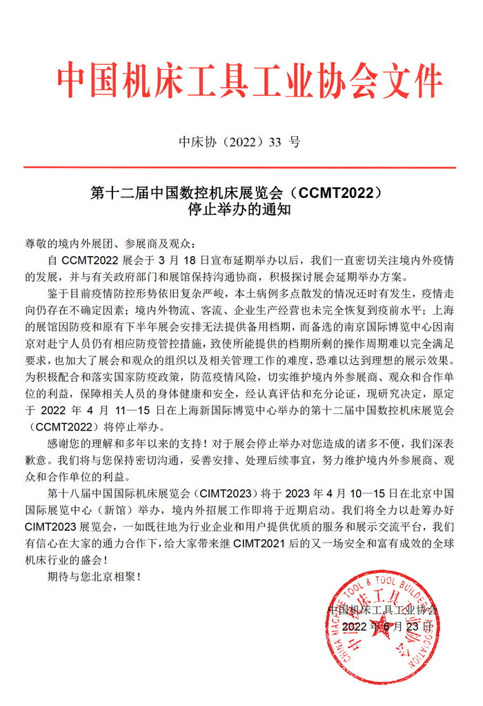 第十二屆中國數(shù)控機(jī)床展覽會(CCMT2022)