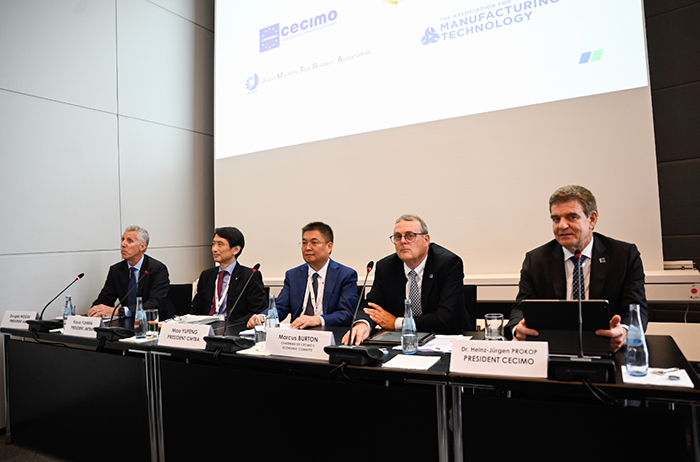 在CECIMO(歐洲機床工業協會)舉辦的一場新聞發布會上,來自美國、中國、日本和歐洲的機床協會負責人聚集在一起,介紹各自國家或地區機床工業發展情況以及應對全球市場挑戰的韌性和實力。中國機床工具工業協會會長毛予鋒參加會議并發言。
