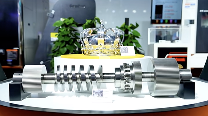 作為全球知名企業(yè)的馬扎克精心展示了豐富的產(chǎn)品線,包括五軸聯(lián)動(dòng)加工中心、混合式復(fù)合加工中心、FMS柔性制造系統(tǒng)、臥式加工中心、立式加工中心、車削中心等,其展品一如既往地展示了在復(fù)合加工、智能制造、綠色制造等方面的高水準(zhǔn)。展臺(tái)上一頂全新加工的歐洲王室皇冠工件吸引了大批觀眾,這正是AI技術(shù)賦能五軸加工應(yīng)用場景的展現(xiàn),VARIAXIS C-600五軸加工中心通過加載SmoothAi系統(tǒng)幫助機(jī)床采用軟硬件結(jié)合的方式,可以針對零件進(jìn)行遠(yuǎn)程虛擬編程和虛擬仿真,實(shí)現(xiàn)一系列智能化操作,這個(gè)皇冠加工是從一塊整料開始,從裝夾到所有工序完成僅用了100多個(gè)小時(shí);馬扎克還展示了新一代混合式復(fù)合加工機(jī)INTEGREX i-250H S AG,這臺(tái)混合式復(fù)合加工機(jī)在車銑復(fù)合機(jī)INTEGREX的基礎(chǔ)上融合了齒輪加工功能和齒輪測量功能,不僅能夠進(jìn)行車削、銑削、五軸加工,還具備刮齒加工、滾齒加工等齒輪加工功能,極大程度實(shí)現(xiàn)了工序集約;在綠色低碳方面,馬扎克此次展出的VARIAXIS i-700 NEO是“NEO”系列的最新產(chǎn)品,是一款兼顧高生產(chǎn)性和高環(huán)保性的新一代五軸加工中心,產(chǎn)品全生命周期內(nèi),碳排放可以削減超30%。