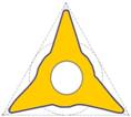 圖1是廈門金鷺在本屆展會展出的專利車刀產品,其中左2和左3分別是刀片的每面帶有3個刀尖的55°刀尖角和35°刀尖角的車刀(圖2)。以前這兩種刀尖角的車刀都是每面只有2個刀尖角,35°刀尖角的V型還由于刀片特別狹長,燒結時的變形不太容易控制而廢品率比較高。廈門金鷺的新產品讓D型刀尖和V型刀尖都增加了50%的刀尖,這無論是對于提高用戶的經濟效益,還是對改善廈門金鷺的產品質量控制,都大有裨益。