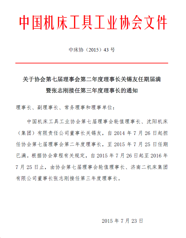 張志剛接任機床協會第七屆理事會第三年度理事長