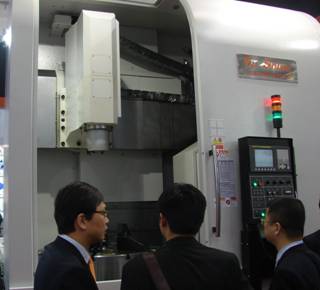 臺(tái)灣油欣精機(jī)(Yu Shine)展出了VLR-1000 ATC+C立車。最大回轉(zhuǎn)直徑Φ1200mm,最大切削直徑Φ950mm,最大切削高度800mm,主軸功率37/45kW,配有刀庫與自動(dòng)換刀系統(tǒng),具有銑車復(fù)合功能。