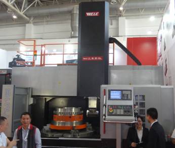 臺(tái)灣崴立(WELE)展出了VTM16銑車復(fù)合立車,該產(chǎn)品獲得2011年臺(tái)灣研發(fā)競(jìng)賽特優(yōu)獎(jiǎng)。工作臺(tái)直徑Φ1600mm,最大加工直徑Φ2000mm,滑枕截面226×226mm,銑主軸轉(zhuǎn)速1600r/min,銑主軸扭矩304N?m,X軸快移12m/min,Z軸快移8m/min,定位精度±0.007/500mm,重復(fù)定位精度0.003mm,整機(jī)重量20t。