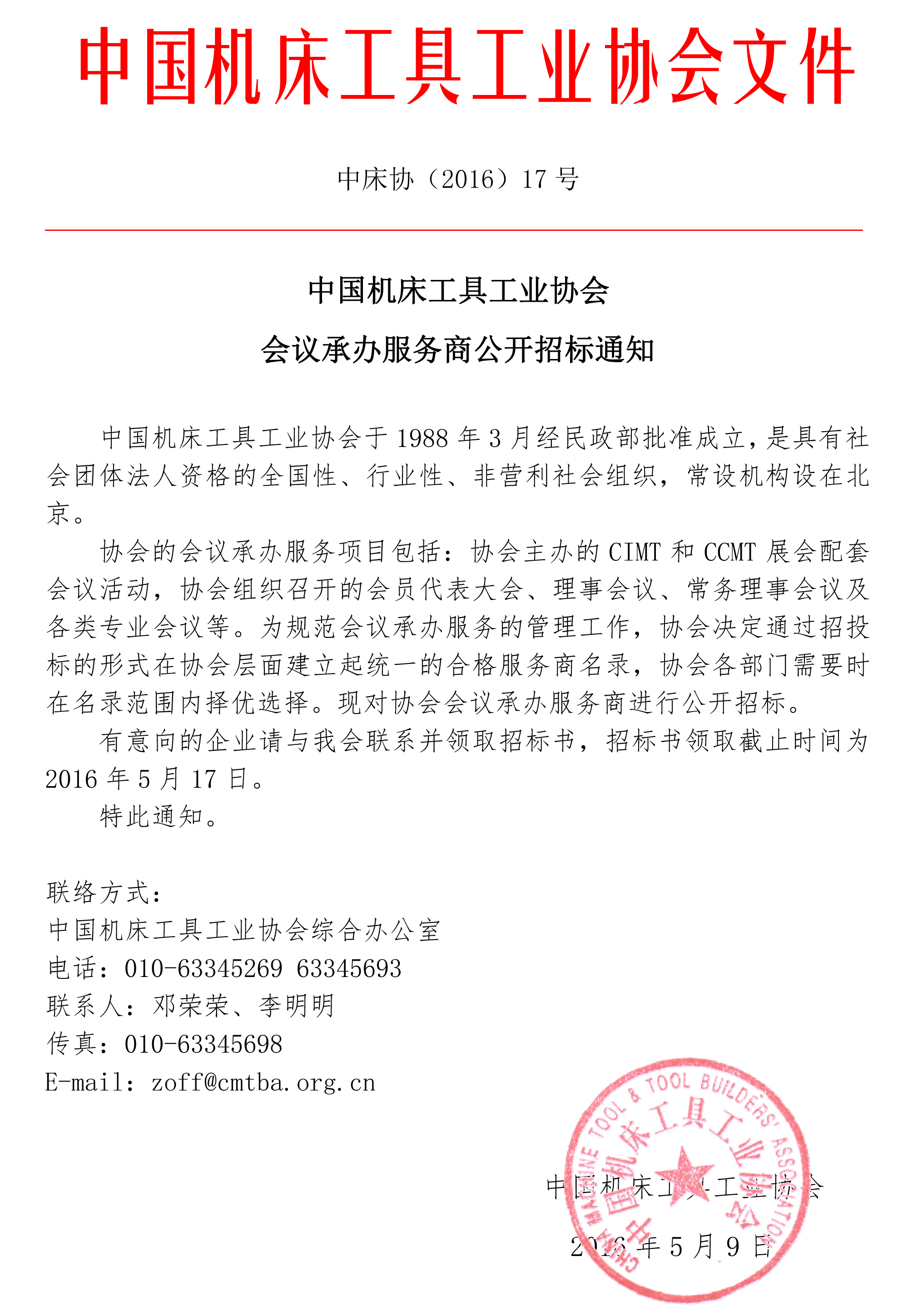 中國機床工具工業協會會議承辦服務商公開招標通知