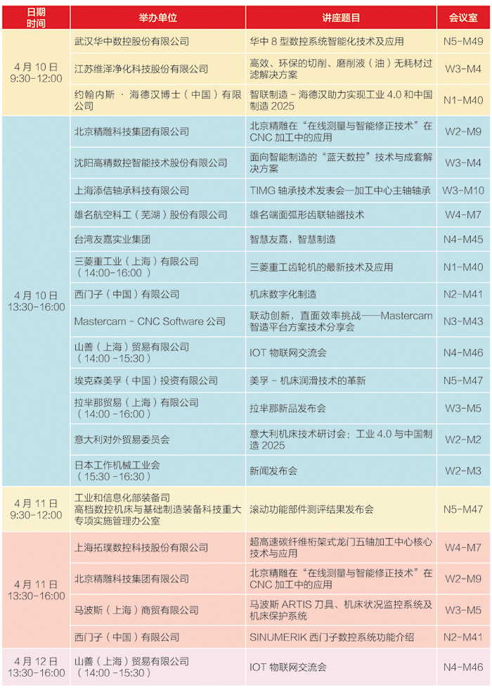 第十屆中國(guó)數(shù)控機(jī)床展覽會(huì)(CCMT2018)將于4月9-13日在上海新國(guó)際博覽中心舉辦,屆時(shí)將舉行多場(chǎng)技術(shù)交流講座,以下發(fā)布部分講座日程表,供廣大展商和觀眾收存,并安排好時(shí)間以便按時(shí)參加。