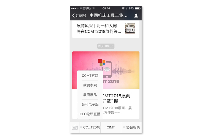 觀眾可通過中國機床工具工業協會官方微信訂閱號進入直播間。步驟如下:
