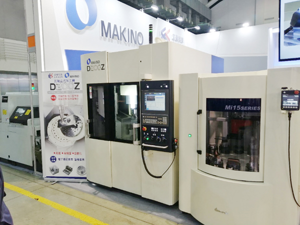 MAKINO公司主要展示了五軸立式加工中心D200Z,這是目前MAKINO公司整個D系列家族中規格最小(工作臺直徑300mm),但同時又運動靈敏的五軸加工中心(刀具主軸最高轉速30000r/min,快進和切削移動最高速度均為60m/min),機床最多可配置100把刀具的自動換刀刀庫,加工工件的最大重量可達75kg。機床主要適用于小型模具精加工中的高效、高品質曲面加工。機床結構小巧緊湊,節約占地空間,高于傳統精密三軸加工中心的加工水平。