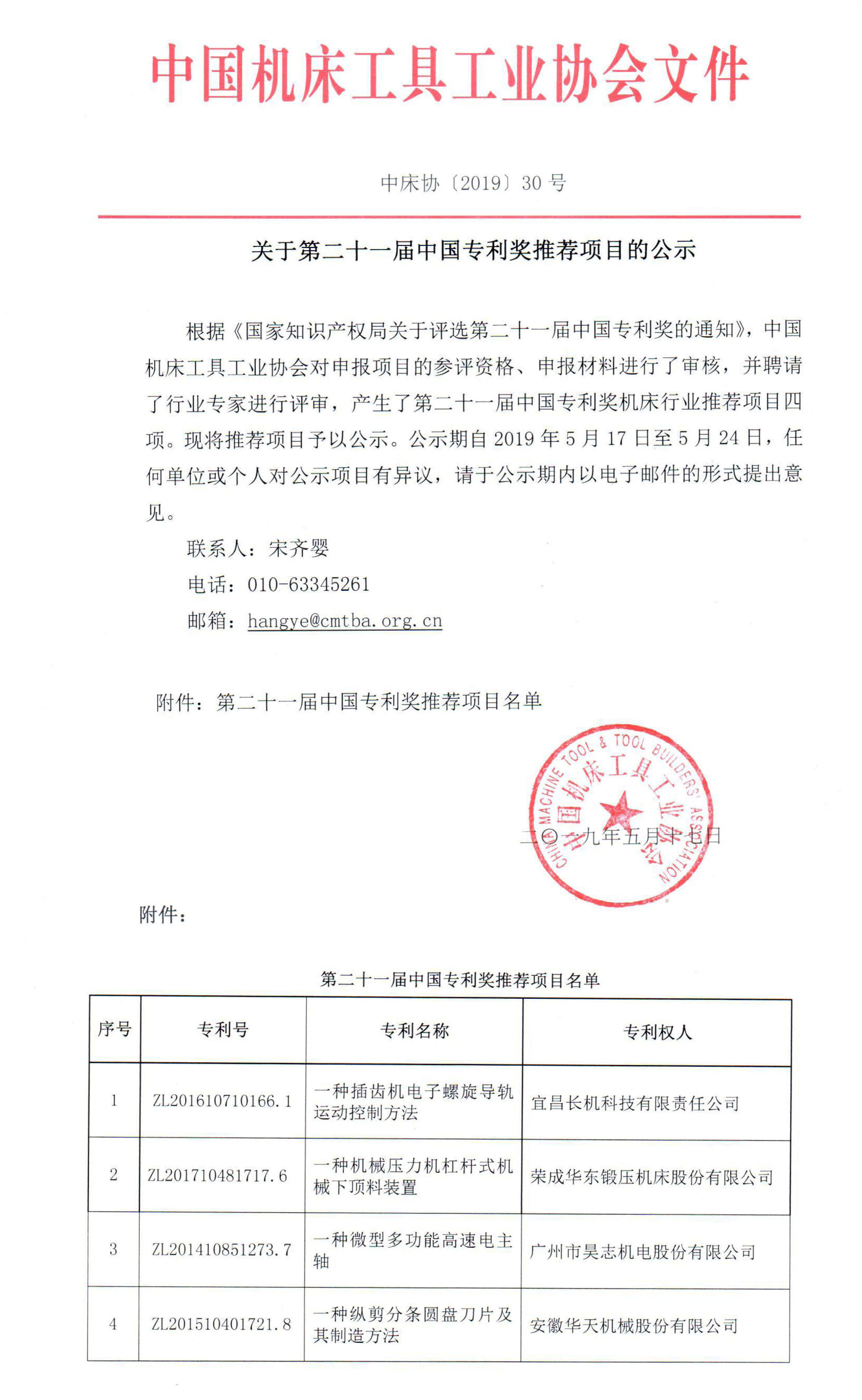 關(guān)于第二十一屆中國專利獎(jiǎng)推薦項(xiàng)目的公示