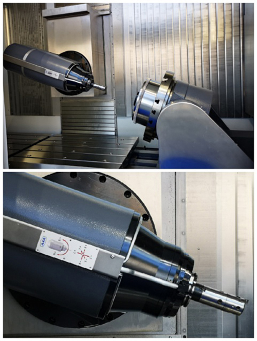 艾克薩是一家德國企業,但其生產基地就設在捷克。該公司本次展出的是VCC50動柱式五軸加工中心。該機床的結構比較特殊:立柱可移動,立柱上的擺動主軸(B軸)轉動范圍為±100°,主軸轉速30-9000r/min,主軸錐度SK50,工作臺為2460mm×850mm,床身上置有臥式數控轉臺,最大承重400kg。機床配有22把刀的刀庫,刀具最大直徑110mm,刀具最大長度500mm。