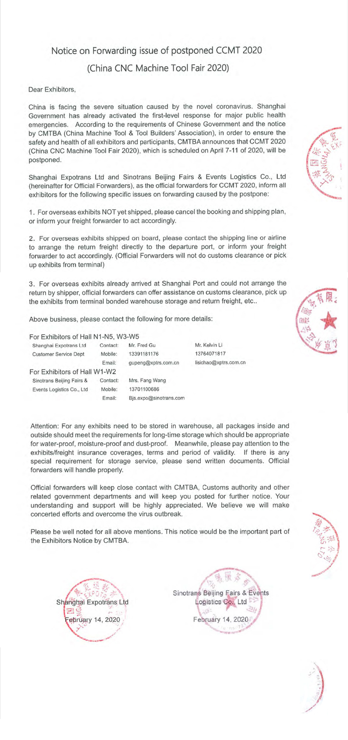 第十一屆中國數控機床展覽會(CCMT2020)延期通知