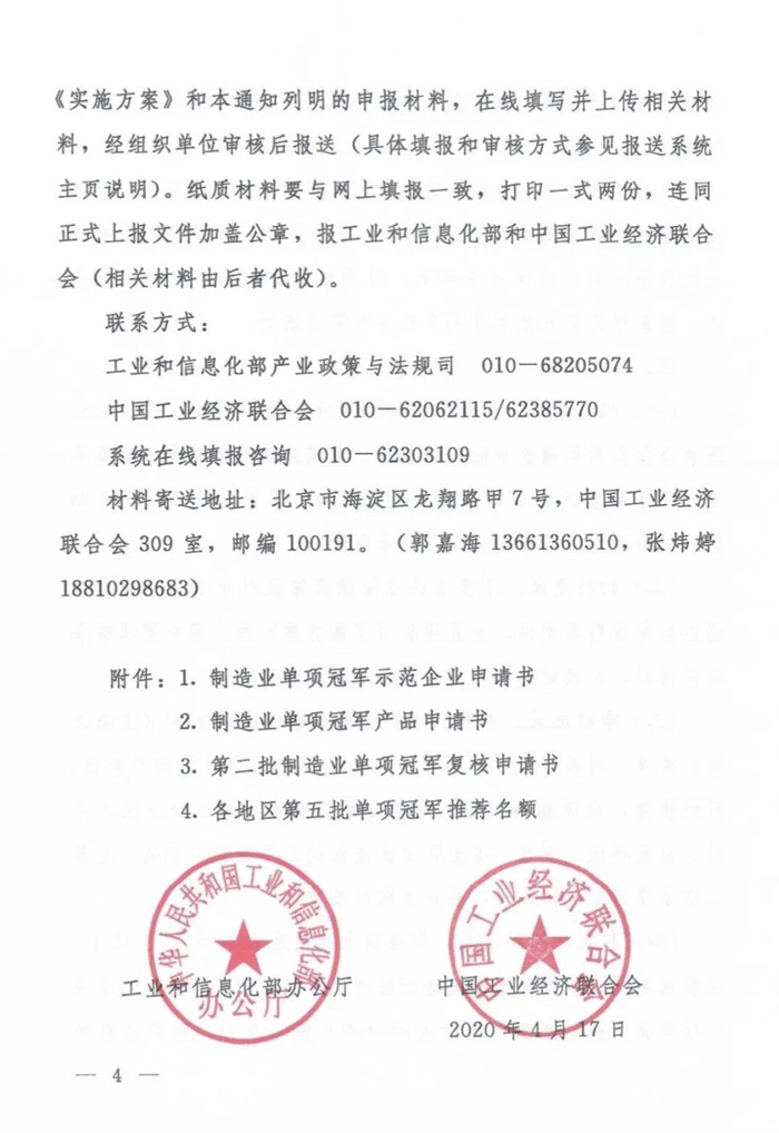 通知|工信部和工經聯組織推薦第五批制造業單項冠軍