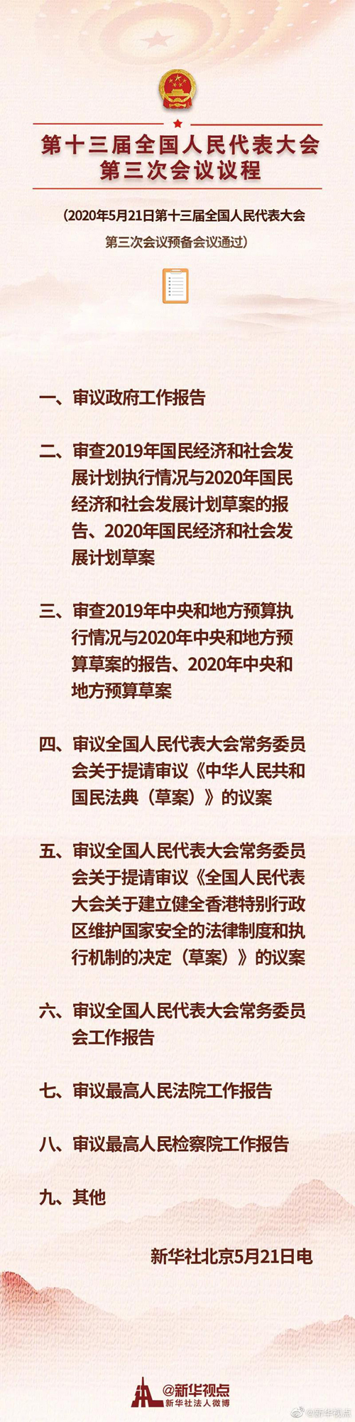 2020年5月22日上午9點,十三屆全國人大三次會議在北京開幕。5月21日下午3點,全國政協十三屆三次會議在京召開。