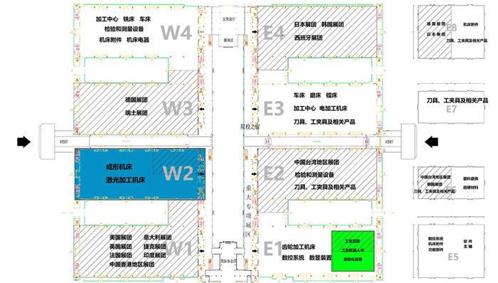 展會整體按國家展團(tuán)與展品分類相結(jié)合的方式進(jìn)行布展。其中,境內(nèi)展區(qū)將盡可能按展品類別進(jìn)行布局安排。在部分技術(shù)領(lǐng)域,實(shí)現(xiàn)境內(nèi)外參展商混合布展,同臺競技。本屆展會設(shè)立了成形機(jī)床和激光加工機(jī)床展館(W2館)和工業(yè)機(jī)器人與自動化設(shè)備展區(qū)(E1館的部分集中區(qū)域),為專業(yè)觀眾和采購商提供方便。