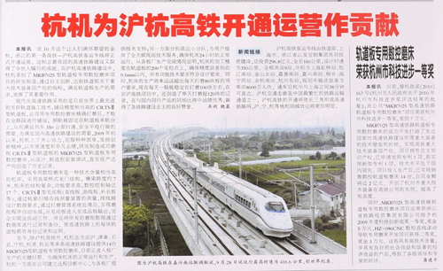 2008年,中國進入“高鐵時代”,面對高鐵建設關鍵設備需求,杭機調集精干力量,通過不懈攻關,在極短的時間內完成了MKB7025型軌道板專用數控磨床的自主研發設計,為京滬高鐵、石武高鐵等建設項目提供了12臺關鍵設備,有效助力了我國高鐵事業的快速發展。