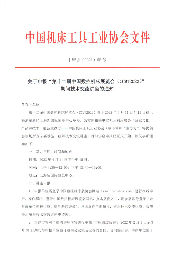 關(guān)于申報(bào)CCMT2022期間技術(shù)交流講座的通知