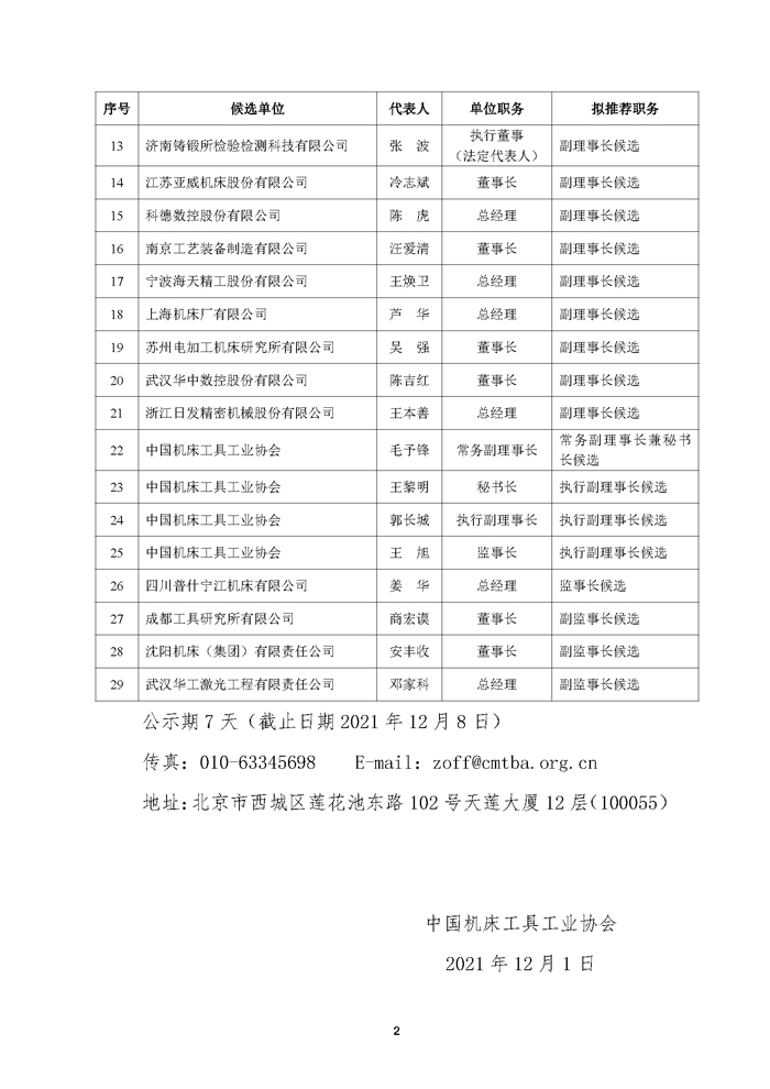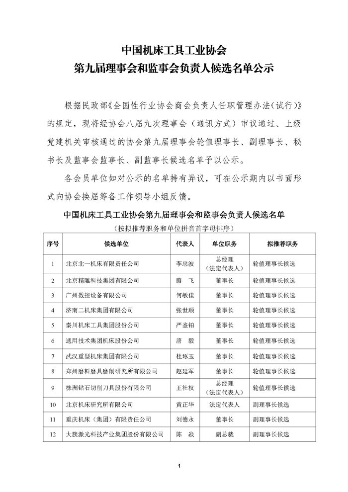 中國(guó)機(jī)床工具工業(yè)協(xié)會(huì)第九屆理事會(huì)和監(jiān)事會(huì)負(fù)責(zé)人候選名單公示