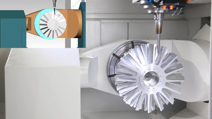 該體系的廣泛應(yīng)用攻克了諸多業(yè)內(nèi)加工難題,例如:真空分子泵葉輪的數(shù)字化制造,通過在精雕CAM軟件中進(jìn)行五軸工藝的開發(fā)規(guī)劃與模擬仿真,實現(xiàn)了一次裝夾16h內(nèi)完成所有加工,并且下機即為“合格品”的卓越水平,不僅做到了用數(shù)字化方法加工,還充分提升了五軸機床的使用效率和五軸加工過程的安全性。