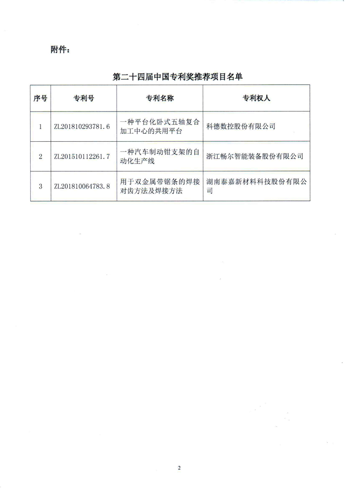 關(guān)于第二十四屆中國專利獎推薦項目的公示