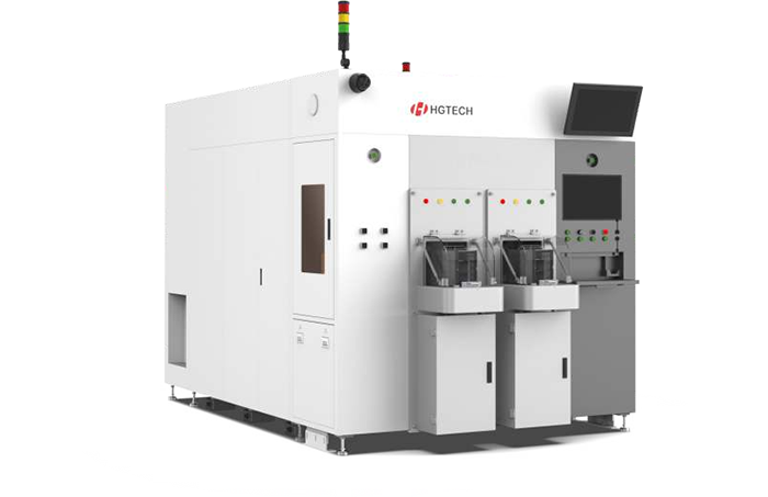 在新舊動能轉化方面,華工激光積極響應。針對汽車行業,華工激光瞄準高端制造需求,今年推出全新一代輪胎模具在線式激光清洗智能裝備(圖4),最快30分鐘即可完成兩副輪胎模具的在線清洗,受到市場青睞,從數智化、綠色化、高效率三方面出發,持續推動輪胎制造行業加速由“傳統制造”向“綠色智造”轉變;針對新能源領域,華工激光積極發展氫能、鋰電等解決方案,尤其針對氫能行業進行“制儲運加用”全方位布局,在制氫環節,打造國內首條GW級堿性電解槽全自動化產線(圖5),聚力突破電解水制氫產業化發展瓶頸,以AI+自動化將產能提升10倍;在半導體行業,華工激光推出全自動晶圓激光退火智能裝備(圖6)、全自動晶圓激光改質切割智能裝備、量測先進裝備整體解決方案,產學研用高效協同,以國產智能裝備研發實現產業鏈自主可控。