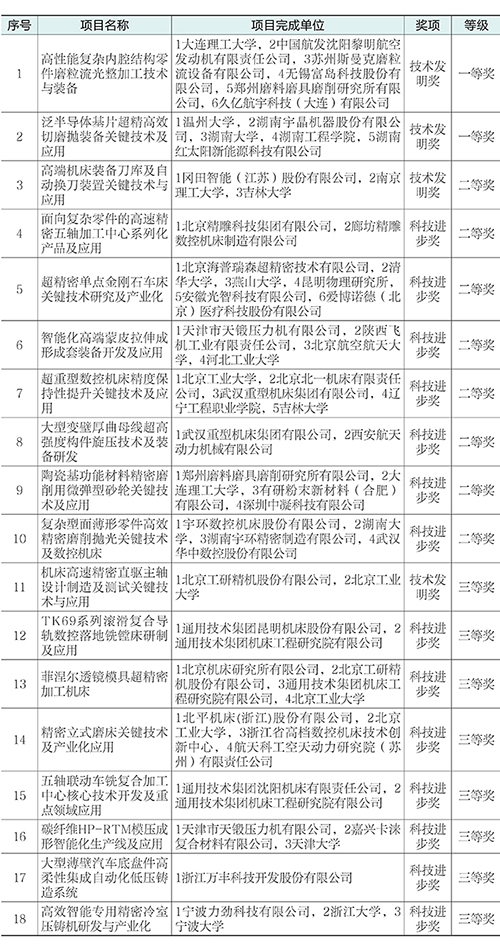第一、從獲獎項目技術屬性來看,項目分布在金屬切削技術、金屬成形技術、鑄造設備、自動控制系統、功能部件、磨料磨具六個領域,其中金屬切削技術項目占比最大。從獲獎項目完成單位來看,企業申報以及企業聯合高校和科研院所申報的項目15項,占比83.3%,其中企業獨立申報項目有5項,占比27.8%,體現了企業科技創新主體地位,加強了企業主導的產學研深度融合,為逐步實現高水平科技自立自強奠定基礎。但同時發現,以企業為第一申報單位獲高等級獎的比例較低,主要原因是編寫申報書的質量欠佳,所提交的資料重點在說明怎么做和實際應用情況,對技術理論和數據分析不夠深入,沒有充分闡述技術的先進性,希望以后準備材料更系統,條理清晰,從理論研究、具體實施到實際應用等全方位進行論述。