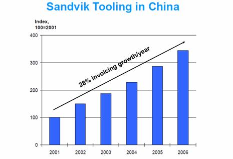 圖3 2001-2006年山特維克在中國銷售年均增長28%